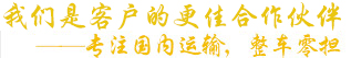 本公司自有及合作车辆资源丰富,拥有不同吨位的大中小型厢式货车、冷藏车、平板车高栏车、飞翼车、危险品车、超宽车、气垫车等各种车型,可根据客户需求定制车辆, 定制路线